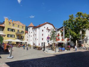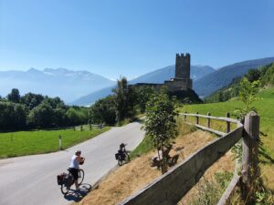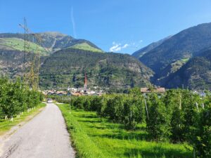 Von Laas aus geht es weiter nach Burgstall. Die Strecke führt durch das Tal und bietet viele Möglichkeiten zum Anhalten und Erkunden der Umgebung. Die Etappe ist etwa 51 Kilometer lang.