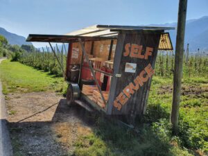 Auf Höhe Bozen haben wir den Etschtalradweg verlassen und sind entlang des Bahntrassen – Radweges Bozen Kaltern abgebogen! Hier müsst Ihr unbedingt die Radstation Frangart besuchen.